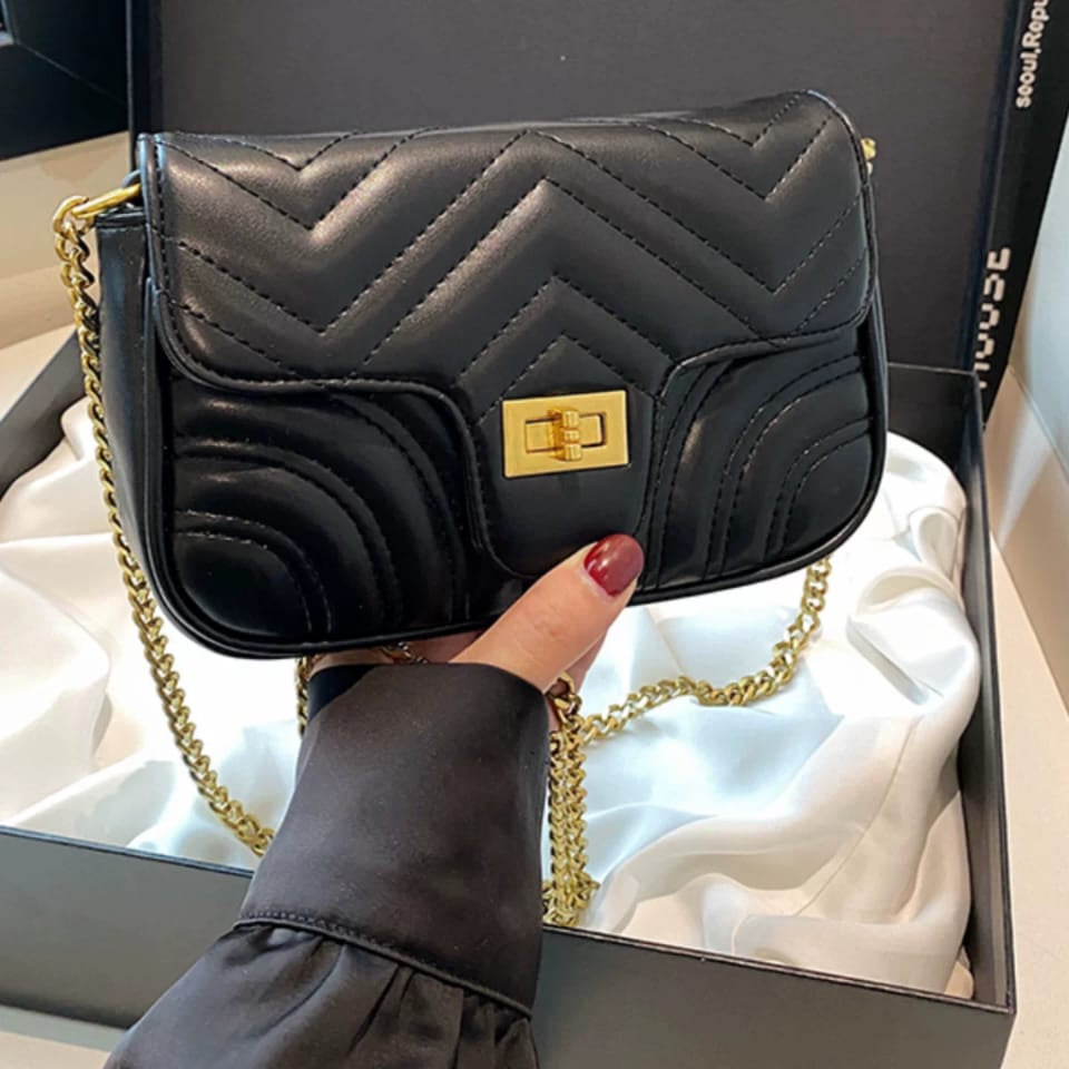 - Design: Features a distinctive quilted pattern on the flap and body, and a minimalist design.